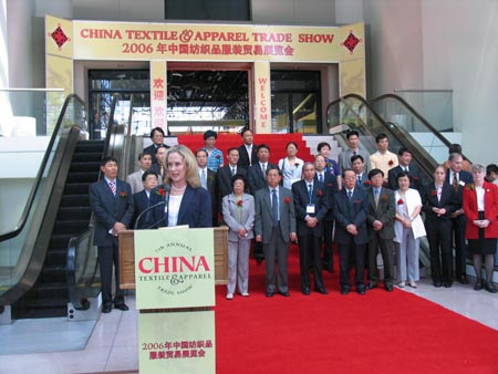 在6月13日舉辦的第七屆“中國紡織品服裝貿易展覽會(紐約)”開幕式上,紐約市市長辦公室國際商務與姊妹城市項目部總經理杰克遜女士宣讀了紐約市市長布隆伯格(Michael Bloomberg)為展會發來的賀信,全文如下: