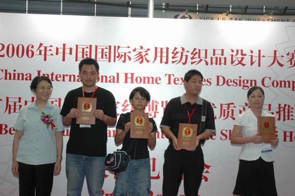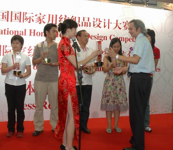 中國貿促會紡織行業分會副會長富榮沛(左二)為獲獎者頒獎