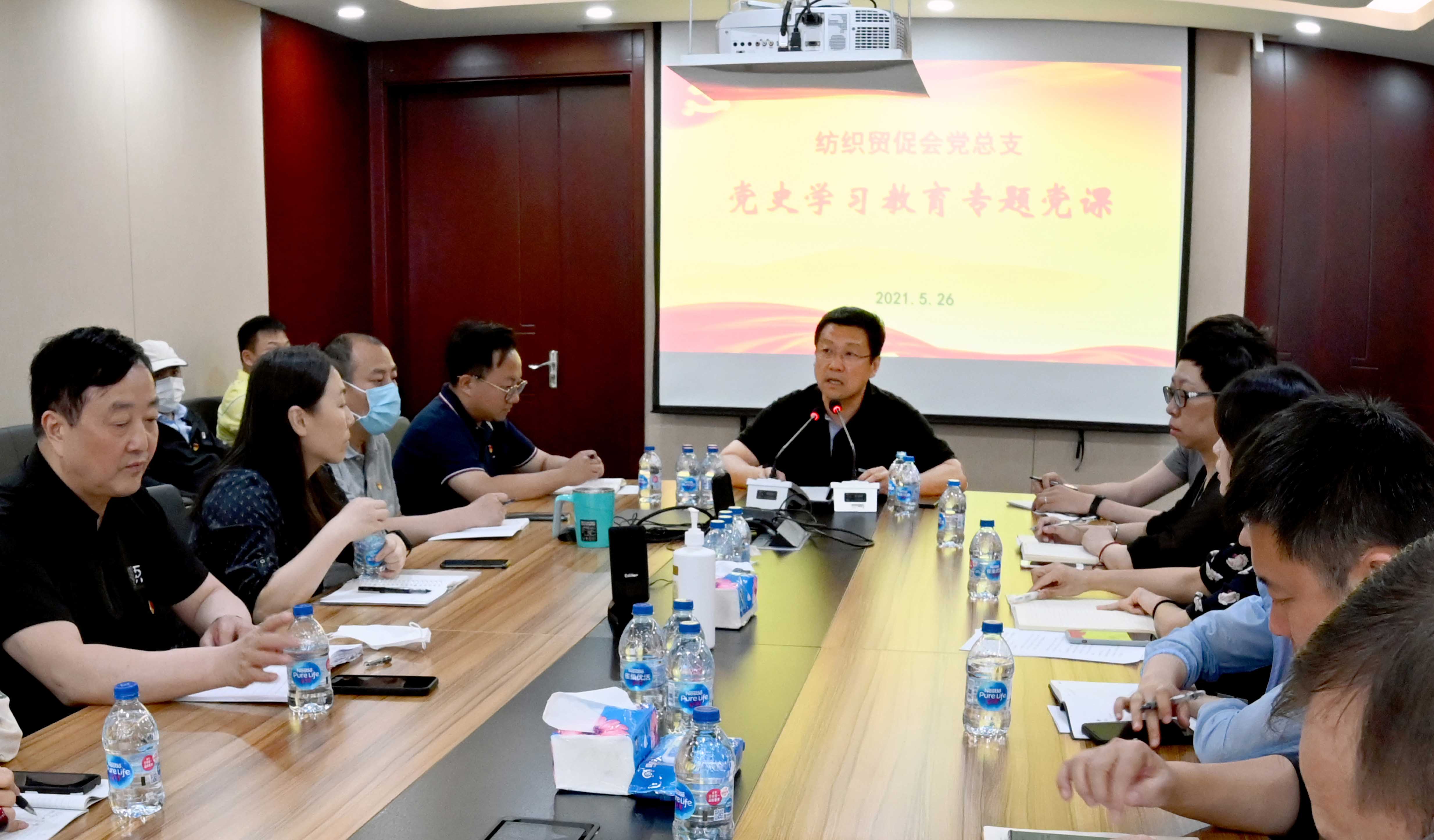 根據中國紡聯黨委黨史學習教育工作安排,2021年5月26日下午,紡織貿促會黨總支書記梁鵬程為全體黨員上了一堂黨史學習教育專題黨課。