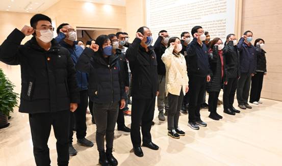 參加活動的黨員干部員工在中共一大紀念館及會址認真聽取講解介紹,仔細觀看照片和實物展覽,全方位沉浸式地接受了黨性教育和思想洗禮。在宣誓區,全體黨員面對黨旗,莊嚴重溫了入黨誓詞。