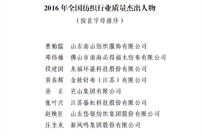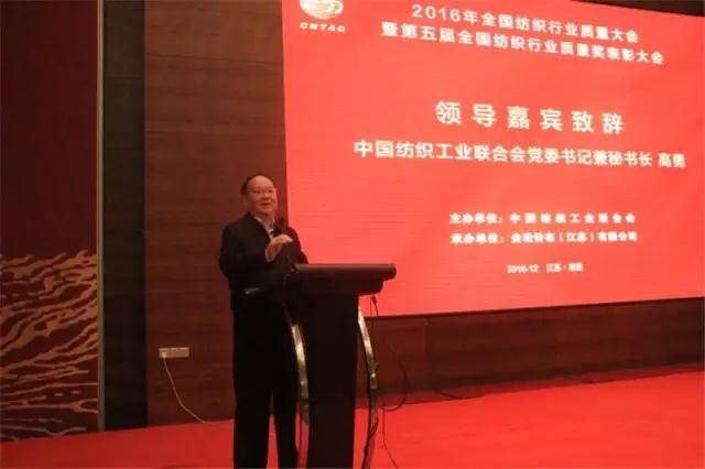 金輪針布(江蘇)有限公司董事長兼總經理黃春輝作為2016全國紡織行業質量杰出人物代表發言。