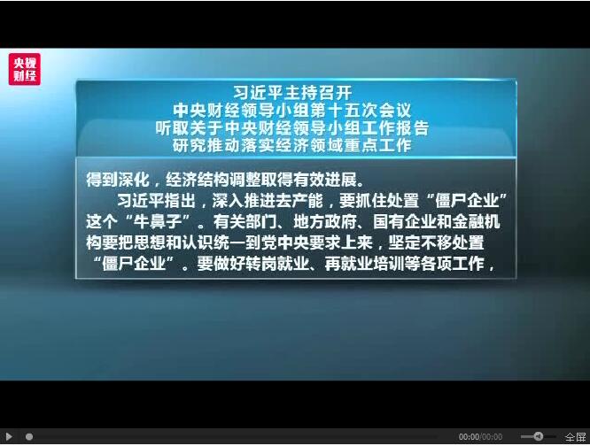 習近平指出,深入推進去產能,要抓住處置“僵尸企業”這個“牛鼻子”。有關部門、地方政府、國有企業和金融機構要把思想和認識統一到黨中央要求上來,堅定不移處置“僵尸企業”。要做好轉崗就業、再就業培訓等各項工作,發揮好社會保障和生活救助的托底作用,確保沒有能力再就業人員基本生活。要區別不同情況,積極探討有效的債務處置方式,有效防范道德風險。