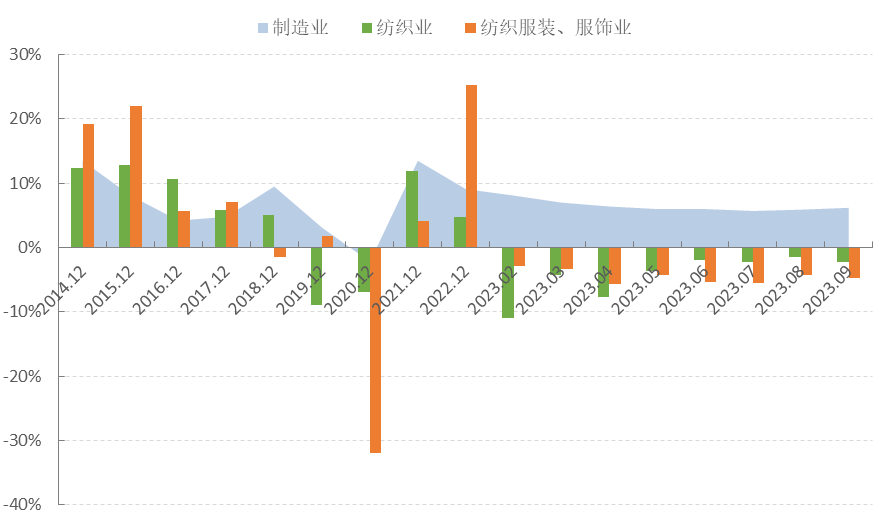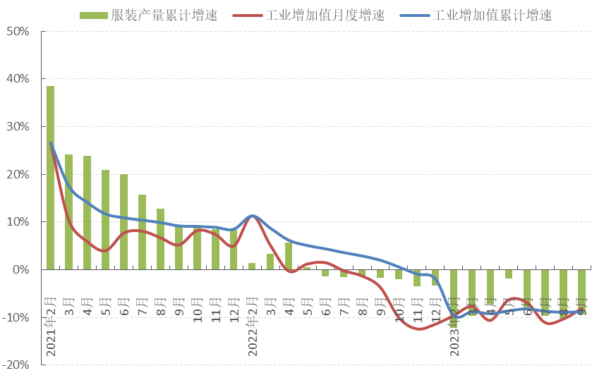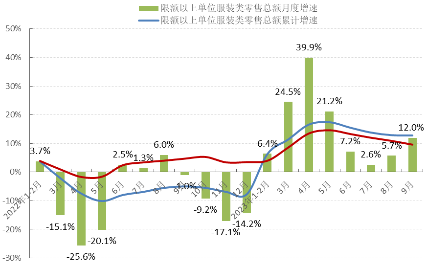 圖1 2023年1-9月服裝行業生產增速情況