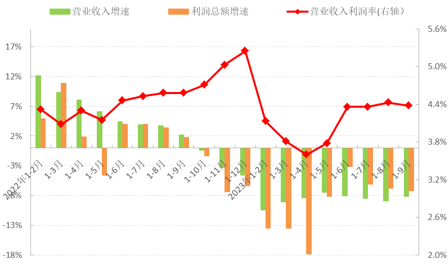圖4 2023年1-9月服裝行業主要效益指標情況