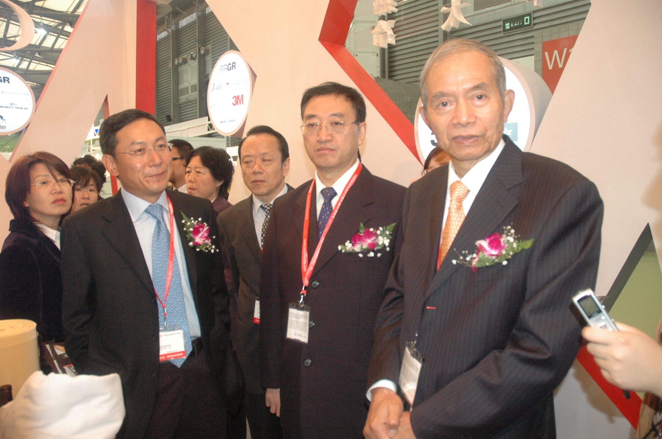 中國紡織工業協會副會長許坤元(右一)、副會長徐文英(右二)在組委會陪同下參觀博覽會