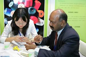 本屆紗線展吸引了法國、印度、巴基斯坦等30多家紗線、纖維類參展商,其展出面積占到總面積的1/3。我國對海外高品質紗線市場的需求,是越來越多海外企業前來參展的最大動力。本屆展會上,參展商帶來的產品以高品質的棉紗為主,功能性產品比較少。在巴基斯坦一家以生產棉紗為主的公司展位前,負責人正認真地給客戶作新產品的介紹,該負責人對記者同樣作了詳細的產品介紹,他對本屆展會的效果表示滿意,遺憾的是,來參展之前低估了中國市場的“消化”能力,帶來的新產品有些少。他說:“隨著歐美的一些紡織品生產商紛紛把加工基地轉移到中國,他們將在本地采購。我認為,中國紡織行業對紗線的需求 量還會大大增加,這將是一個最大的市場。我們在紗線展上,能結識來自世界各地的買家,并建立長久聯系,這對我們來說是擴大貿易的最好途徑!