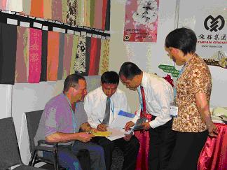 以天絲、莫代爾等新型纖維開發(fā)的各種結(jié)構(gòu)、風(fēng)格的面料形成了系列化、多樣化的風(fēng)格,使我們公司始終走在新型纖維面料開發(fā)的前沿。我們公司30%的產(chǎn)品出口日本、德國,此次參展我們帶來了天絲與麻、天絲與棉、竹纖維等新型面料與服裝,這些都是我們根據(jù)市場需求最新開發(fā)的產(chǎn)品。這次參加紐約紡織品服裝貿(mào)易展是作為公司開拓美國市場的一種嘗試,僅開幕第一天上午就接待了30多個客戶,對參展效果十分滿意,從而對美國的市場充滿信心。
