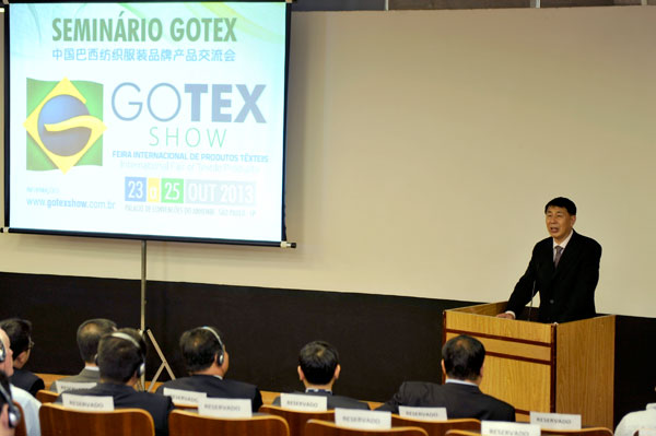 圣保羅當地時間2013年10月23日下午,"中國巴西紡織服裝品牌產品交流論壇"在巴西圣保羅安年比展覽中心順利召開。中國紡織工業聯合會副會長張延愷,中國駐巴西大使館公使銜參贊王慶元以及巴西服裝協會總裁Roberto Chadad分別為論壇致辭。中國紡織品進出口商會副會長王宇作主旨發言。