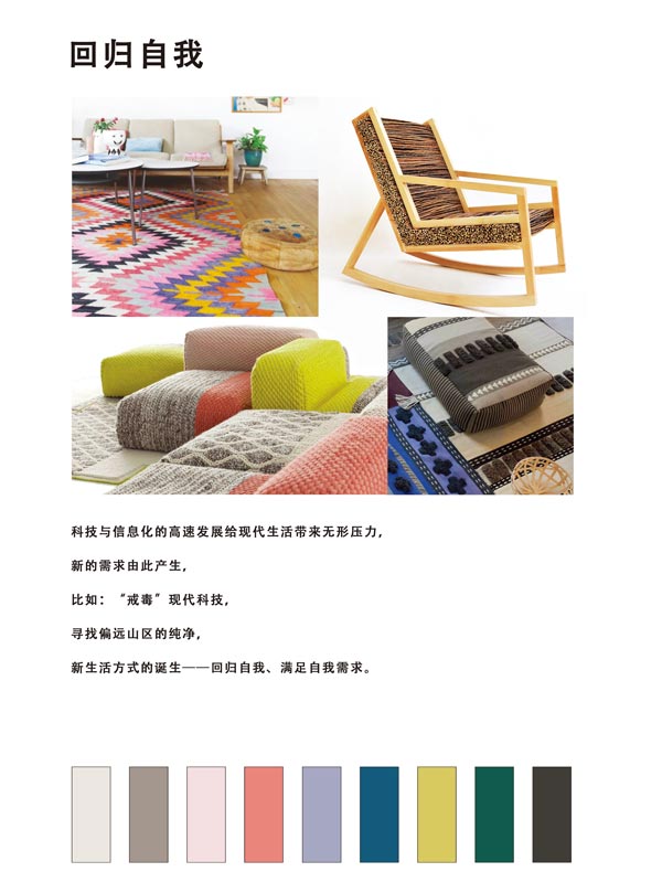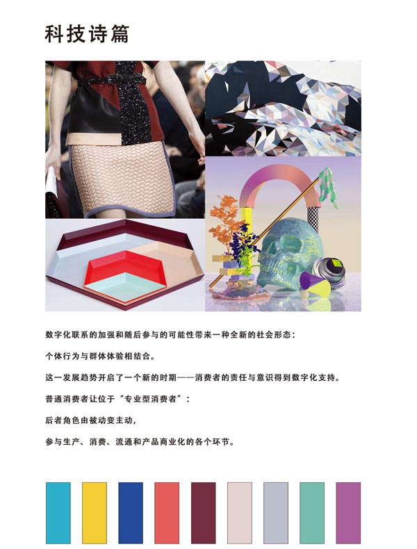 "2015/16中國家用紡織品流行趨勢"通過對國內外市場的充分調研分析,從消費者的生活方式和情感需求出發,推出了"奇幻重生"、"回歸自我"、"概念自然"、"科技詩篇"四個趨勢主題,向行業及大眾傳達新一季家紡流行風尚的同時,引導企業產品研發,促進家紡行業的設計創新。