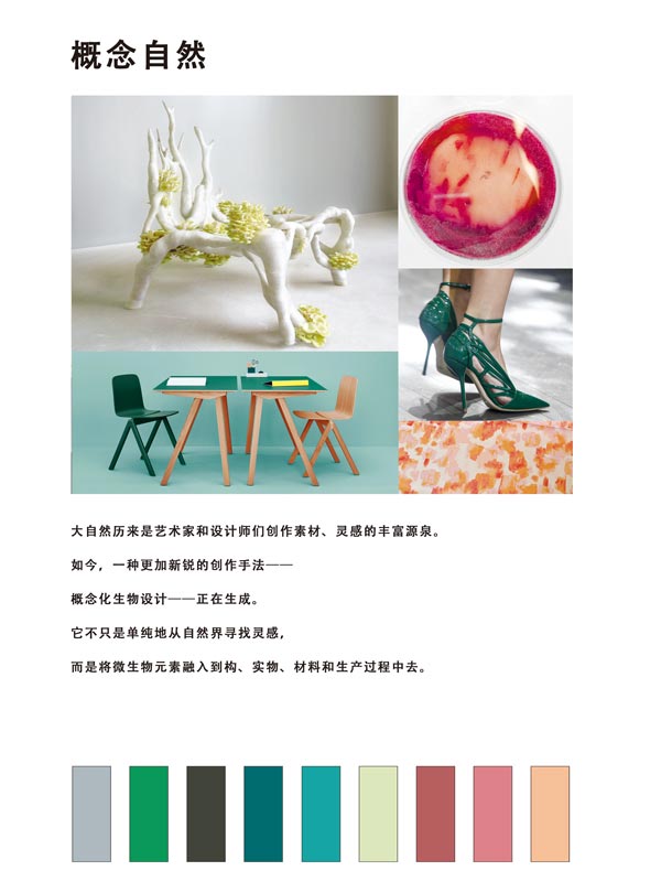 大自然歷來是藝術家和設計師們創作素材、靈感的豐富源泉。如今,一種更加新銳的創作手法--概念化生物設計--正在生成。它不只是單純地從自然界尋找靈感,而是將微生物元素融入到構、實物、材料和生產過程中去。