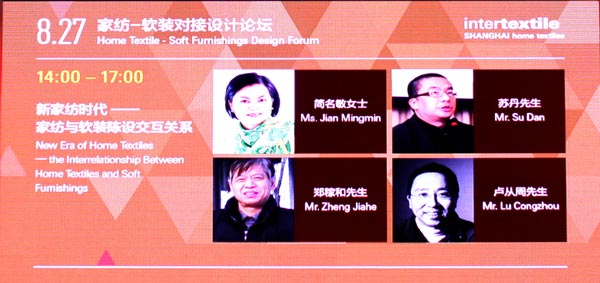 活動采用演講與互動相結合的形式,聘請三名重量級演講嘉賓從不同的維度深入探討家紡與軟裝陳設的交互關系。清華大學美術學院副院長,清華大學美術學院環(huán)境建設藝術咨詢研究所所長蘇丹教授以“織物與空間”為題作主題演講,重點介紹與家紡設計密切相關的軟裝陳列設計和室內(nèi)設計要素。臺灣著名軟裝設計師、簡氏裝飾設計有限公司創(chuàng)始人簡名敏女士從家紡如何創(chuàng)造更好的環(huán)境、認識材質(zhì)、陳列技巧的秘密武器三個方面陳述如何創(chuàng)造家紡產(chǎn)品的陳列藝術美感。上海集元建筑事務所鄭稼和設計工作室總設計師鄭稼和先生從室內(nèi)裝飾陳設布置的構成,布藝在陳設中的位置及應用方法,古典主義到現(xiàn)代主義的案例分析三個方面闡述室內(nèi)裝飾的格調(diào)與布藝應用。