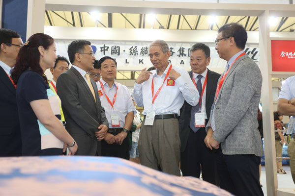 中國紡織工業聯合會名譽會長許坤元(右三),副會長孫瑞哲(右一)、楊紀朝(右二)、黨委副書記陳偉康(右四)參觀展會
