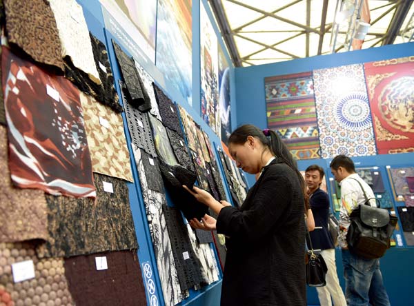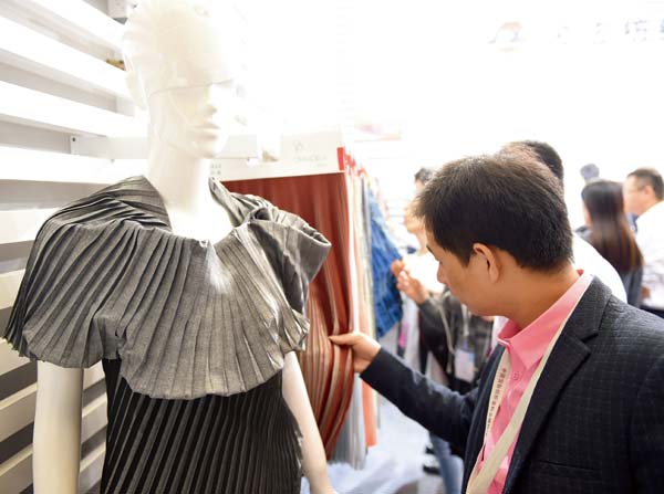 4、在時尚歐洲館的潮流趨勢展區,時尚新潮的面料吸引了買家的眼球。本展區展示了來自意大利的最新面料。