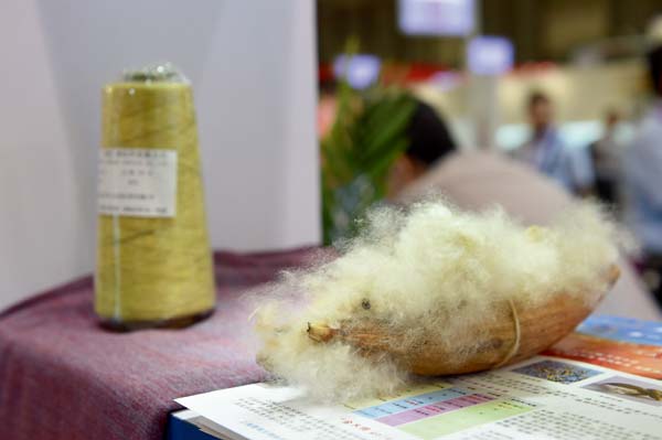 6、新型天然功能性纖維受到關注,木棉纖維被喻為樹上"羊絨",擁有天然抑菌、天然驅螨、天然中空三大功能,木棉是木本植物的果實纖維,是一種綠色生態、環境友好、低碳環保的植物纖維。圖為一家國內企業展示的木棉纖維樣本。