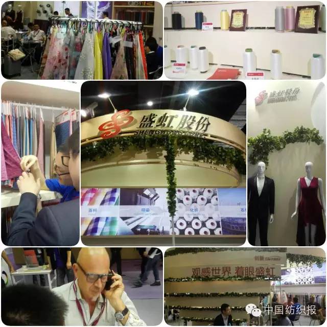 盛虹展出的多款產(chǎn)品,包括吸濕速干纖維、永久彈力復(fù)合纖維、竹節(jié)紗、陽離子DTY纖維、全消光纖維、滌綸異收縮絲、記憶纖維、彩虹紗等。其中,彩虹紗是重點推介產(chǎn)品,該產(chǎn)品由陽離子滌綸與普通滌綸復(fù)合,俗稱陽滌復(fù)合絲,可用于運動休閑、戶外及時裝面料,制成的運動風(fēng)格產(chǎn)品色彩豐富多變,立體效果好,時尚感強。