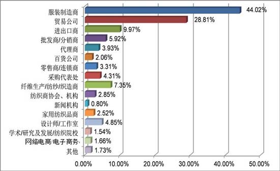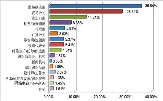 其中現(xiàn)場登錄的國內(nèi)觀眾按其行業(yè)性質(zhì)分類,各占國內(nèi)觀眾數(shù)量的百分比為: