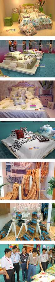 走進博覽會的4號館,驚喜地發現滿目皆是杭州字樣:杭州!杭州!還是杭州! 一了解,原來是杭州市余杭區作為中國紡織工業協會和中國家用紡織品行業協會聯合授牌的“中國布藝名城”在本屆展館博覽會為了“打造家紡區域品牌;推進產業集群發展”,這次以集團軍作戰的方式,不僅包下了整個4號展館,而且在E1館還展出了自己企業的精品,充分展示了中國布藝名城的強大實力。