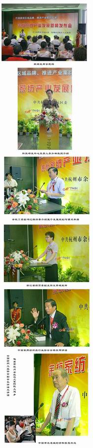 為了很好地宣傳家紡區域品牌,余杭區委、取政府還專門在博覽會上召開了“余杭家紡產業發展新聞發布會”,詳細推介杭州市余杭區的研發中心、產業園區和近況和發展前景,吸引了30余家新聞媒體。中國紡織工業協會副會長許坤元、中國家用紡織品行業協會會楊東輝、浙江省經貿委副主任王素娥、杭州市經委主任趙紀來等眾多領導出席了新聞發布會。