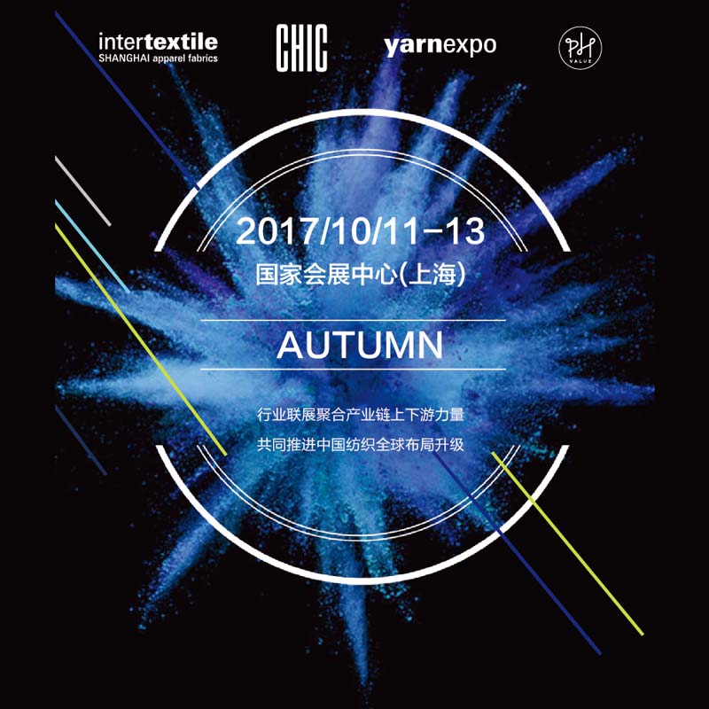 中國國際紡織面料及輔料(春夏)博覽會、中國國際服裝服飾博覽會2017(春季)、中國國際家用紡織品及輔料(春夏)博覽會、中國國際針織(春夏)博覽會和中國國際紡織紗線(春夏)展覽會,五大專業展會將同期同地,以超35萬平方米、近5300家展商的恢弘之姿,全球絕無僅有之態,屹立國家會展中心(上海),共振上下游,鏈接海內外。