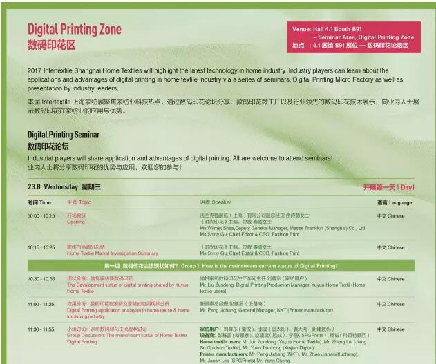 我們很榮幸能邀請業(yè)內(nèi)人士在數(shù)碼印花論壇中為大家分享數(shù)碼印花的主流現(xiàn)狀及未來發(fā)展趨勢、在家紡及家裝的設(shè)計應(yīng)用和解決方案等豐富信息!