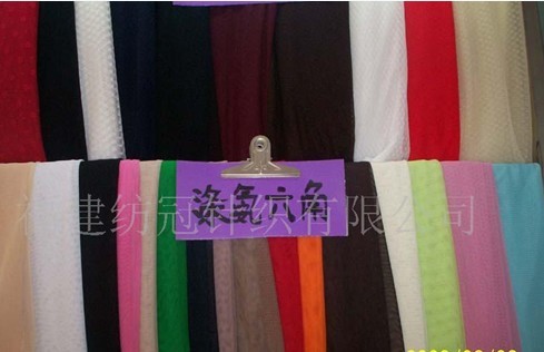 公司專業(yè)生產(chǎn)39眼錦氨四面彈網(wǎng)布、40D48F朱羅紗,工字型氨綸網(wǎng),尼龍透明紗網(wǎng),超薄形氨綸網(wǎng),50/72低彈點(diǎn)點(diǎn)花,28眼加密型婚紗網(wǎng),超薄型錦綸高彈加密網(wǎng),170-2副-33眼滌氨網(wǎng),42眼加密四梳滌綸,505低彈網(wǎng)眼布,6420復(fù)絲網(wǎng)布,50D、72F滌氨韓國(guó)網(wǎng),20D時(shí)裝平紋布,三梳滿天星面料,彈性印花網(wǎng)眼,72F彈力網(wǎng)布,30D經(jīng)編面料:210D錦氨四梳網(wǎng)眼布,40D高彈錦綸底布,50D滌氨四角、70140錦氨六角、八角,菱形,正方形,工字形,桃形,針空網(wǎng)眼。產(chǎn)品主要用于服裝、刺繡、婚紗、胸罩、圓網(wǎng)印花、禮品、婚禮禮服、貝貝佳。成分:真絲,全棉,滌綸,錦綸,氨綸等眾多產(chǎn)品,現(xiàn)已向上游化纖產(chǎn)品即加彈絲領(lǐng)域發(fā)展和下游產(chǎn)品深加工開(kāi)等領(lǐng)域深入,可根據(jù)客戶來(lái)樣,定做各種款式的婚紗用的網(wǎng)布,并可染成各種色彩,各種幅寬,各種密度,環(huán)保無(wú)毒型,質(zhì)量達(dá)到國(guó)家標(biāo)準(zhǔn)。本廠已有多年的生產(chǎn)歷史,現(xiàn)是港臺(tái)十多家婚紗廠家的直接生產(chǎn)供應(yīng)商,信譽(yù)良好,并有足夠 的技術(shù)進(jìn)行相關(guān)布樣的開(kāi)發(fā)。請(qǐng)聯(lián)系。