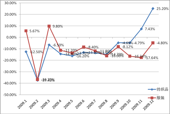日前,根據(jù)海關(guān)總署公布的2009年出口整體數(shù)據(jù),2009年12月我國紡織品出口同比增長達(dá)25%,服裝也只有不到5%的同比負(fù)增長,是全年出口恢復(fù)最好的一個月。