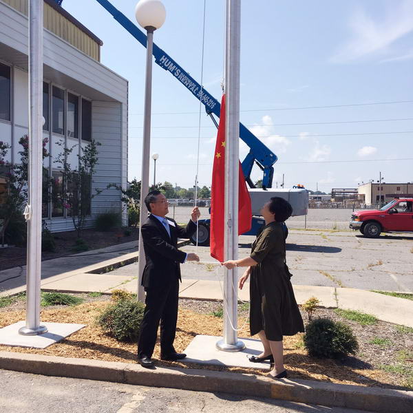 ▲徐會長和謝會長在天源美國廠區升旗