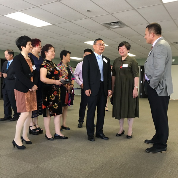 隨后代表團一行奔赴小石城工業園,在天源董事長唐信宏陪同下,參觀了天源服裝公司美國廠區,并出席了天源服裝公司與喬治亞理工大學簽約儀式(歷時13個月談判,雙方終于簽署了戰略合作協議、優惠服務條約、保密協議等四個法律文件)。