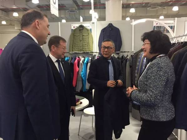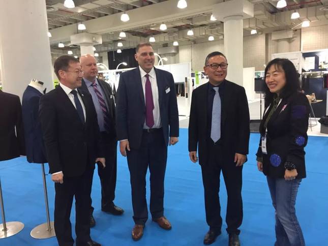 1月22上午,中國紡織工業聯合會副會長兼中國國際貿易促進委員會紡織行業分會常務副會長徐迎新,法蘭克福展覽(美國)公司總裁Mr.Dennis Smith一行參觀了展會。
