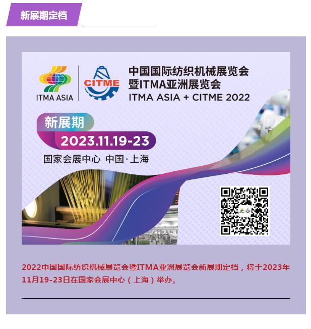待到2023開展之際,2022中國國際紡織機械展覽會暨ITMA亞洲展覽會將向全球業界觀眾呈現盡覽紡機行業全貌的一站式采購平臺,帶來多領域高端智能化解決方案,為全球紡織工業發展提供更高質量的服務。