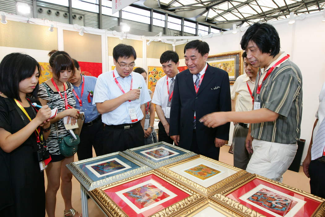 王天凱一行參觀了海寧、余杭、非物質文化遺產展區。在世樺科技布藝展臺前,王天凱詢問了產品設計和花型的版權保護情況。世樺科技布藝負責人介紹說:“我們的花型都是原創的,主要通過提高設計難度、加快新品開發速度、保持高品質來防止被抄襲。”在非物質文化遺產展區,王天凱參觀了沈秀、藍印花布、侗錦等展臺,并點評道:“做非物質文化遺產一定要有創作、有傳統,將傳統文化與現代元素相結合。今年的非物質文化遺產展區做得很有味道。”