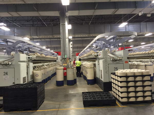 2015年3月,科爾美國公司的32臺(tái)轉(zhuǎn)杯紡生產(chǎn)線竣工投產(chǎn)。在2.14萬平米的車間內(nèi),晝夜不停工的生產(chǎn)線,將來自美國本土的棉花,每天加工成約60噸紗線,再運(yùn)到位于300多公里外的港口,銷往中國和其它亞洲國家。