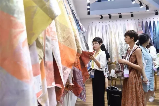在巧色云聚展廳內,杜鈺洲對一款繡花面料很感興趣,并向該展位負責人詳細了解了生產工藝細節。他說道,企業生產一定要關注細節,色彩對比度、輔料搭配等每一環都不容忽視。