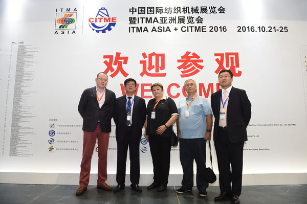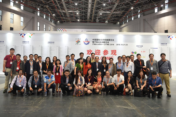 紡機展一向非常重視專業觀眾的邀請工作,不僅專業觀眾多,而且國際化程度高。 22日一早,來自印度、俄羅斯以及越南的買家參觀團就來到了展會,中國紡織機械協會會長王樹田、中國國際貿易促進委員會紡織行業分會副會長梁鵬程代表主辦方向各個參觀團表示了熱烈的歡迎,并合影留念。
