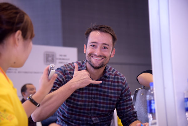 在工作人員的協助下,來自各國的觀眾填寫登錄卡并辦理胸卡。