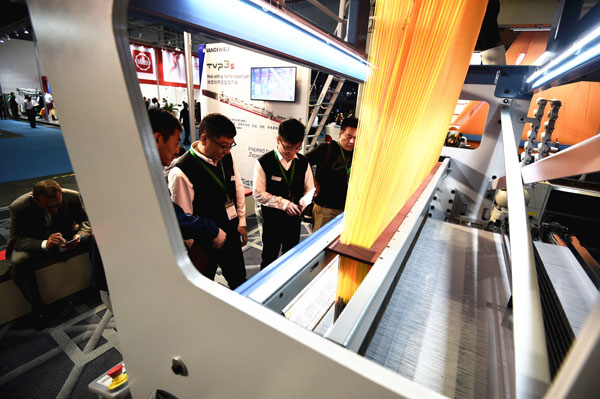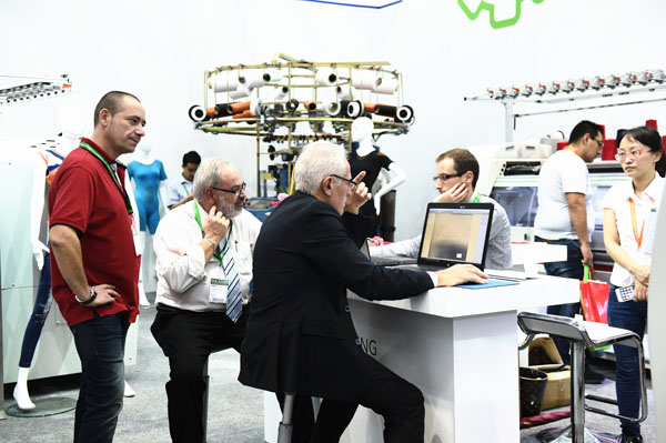 展館中的各類機械發出規律的聲響,共同演奏出屬于紡織機械展的主題交響曲,演繹著紡織機械行業的尖端科技。人頭攢動,握手、成交在一個個展位中頻頻上映,交匯織就著紡織機械企業新的交易成績。