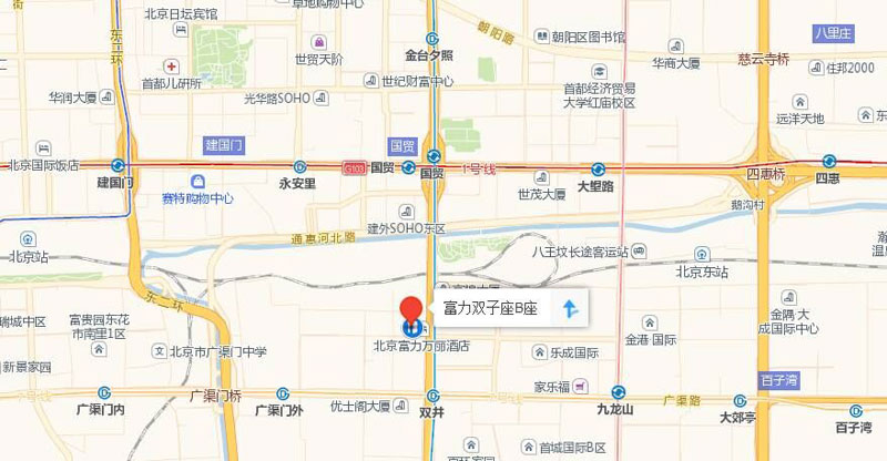 A口出站 沿東三環中路向北步行約550米路西