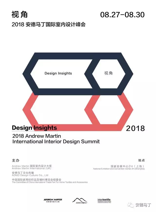2018 安德馬丁國際室內(nèi)設計峰會將于8月27日至30日在上海國家會展中心舉行。峰會將以“視角”為主題,由“視角”主題論壇,“無界之合”跨界家居藝術(shù)展兩部分組成。屆時,峰會將邀請眾多海內(nèi)外頂尖設計師、藝術(shù)家、行業(yè)精英,齊聚上海,從多元的領域和角度,以設計之名展開一系列溝通交流。本次峰會由 Andrew Martin International (UK)、安德馬丁文化傳播和中國國際家用紡織品及輔料博覽會組委會聯(lián)合主辦。