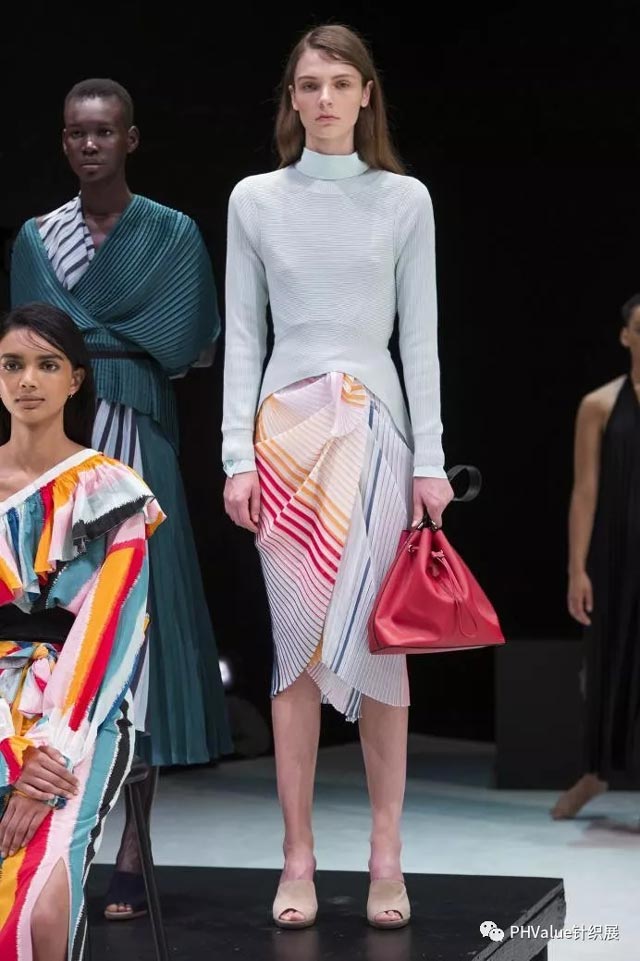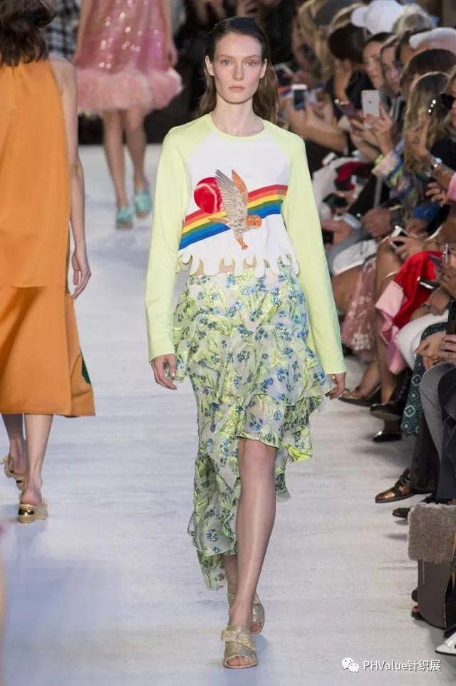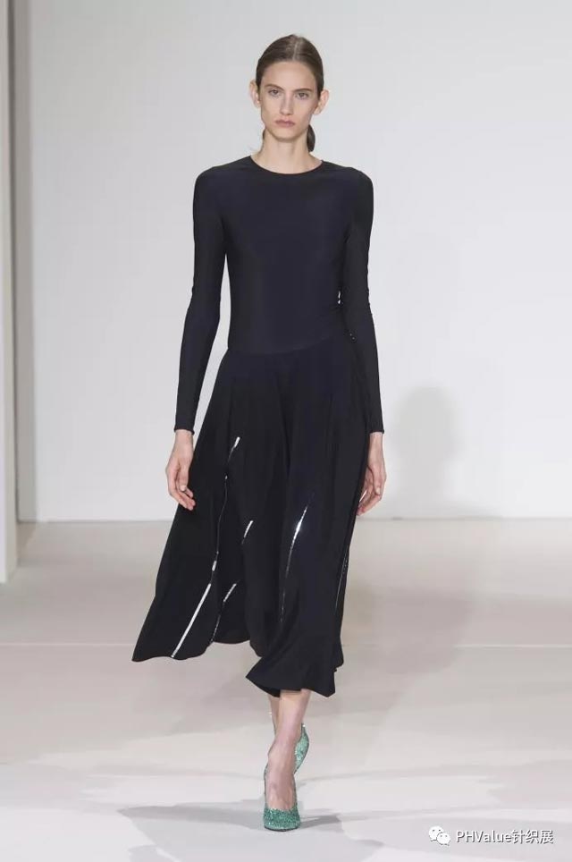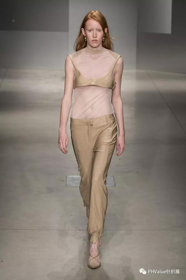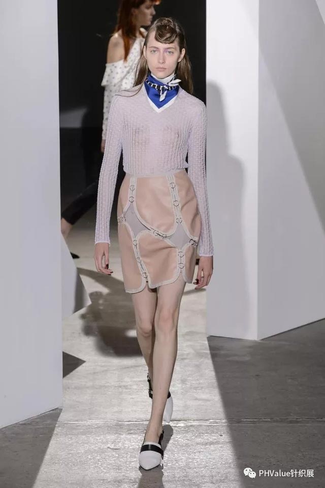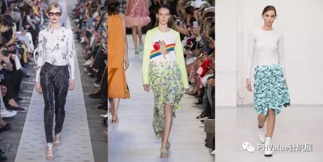作為易穿的百搭單品,緊身版型的圓領(lǐng)仍很流行,薄紗和半透明彈性面料采用平紋啞光的纖維膠與人造布混紡、甜美蕾絲,或條紋和印花。與華麗的面料組合是關(guān)鍵,如表面采用亮片和羽毛,打造修身的疊穿效果。服裝在整體設(shè)計(jì)上,柔美的元素,女性風(fēng)格的細(xì)節(jié)設(shè)計(jì),打造出別具魅力的日裝或T臺(tái)服裝。