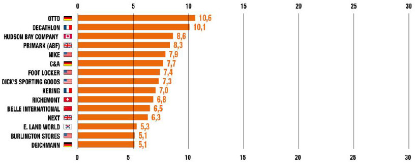 全球30多家主要國際零售商中,來自歐洲的有11家。