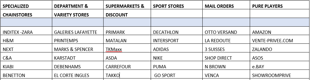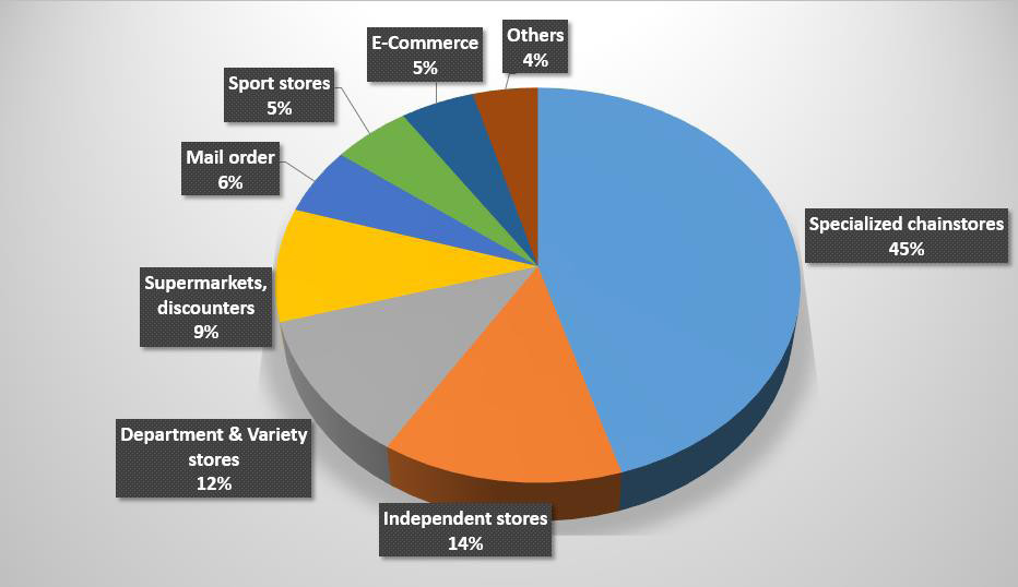 歐洲市場是由大量零售商來統治的,如專業連鎖店、百貨商店、食品零售商和電商。