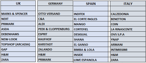 Ⅳ、歐洲市場的服裝供應商
