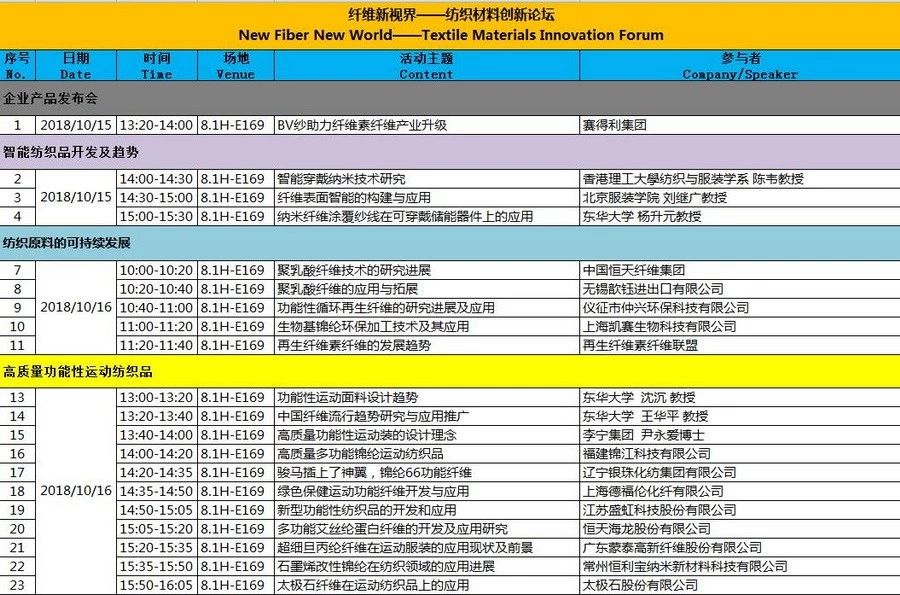 “中國(guó)纖維流行趨勢(shì)主題展區(qū)”由“中國(guó)纖維流行趨勢(shì)2018/2019概念區(qū)”、 “中國(guó)纖維流行趨勢(shì)”入選企業(yè)區(qū)和“紡織材料創(chuàng)新論壇”組成。展區(qū)集中展示入選中國(guó)纖維流行趨勢(shì)2018/2019的新型纖維,結(jié)合入選企業(yè)高品質(zhì)的產(chǎn)品和精心打造的品牌形象, 將纖維最新技術(shù)、前衛(wèi)應(yīng)用及未來發(fā)展趨勢(shì)傳遞給纖維行業(yè)及下游客戶。紡織材料創(chuàng)新論壇區(qū)”為上下游企業(yè)搭建了溝通交流的平臺(tái),您將可以與來自紡織行業(yè)知名的專家學(xué)者、企業(yè)大咖面對(duì)面對(duì)話交流。