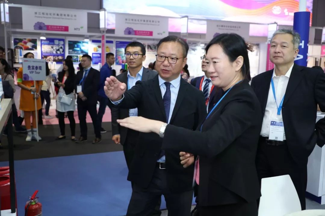 中國紡織工業(yè)聯(lián)合會黨委書記兼秘書長高勇,會長孫瑞哲,原會長杜鈺洲,原副會長許坤元,副會長楊紀朝、夏令敏、徐迎新、端小平、孫淮濱,原副會長張莉等領(lǐng)導與嘉賓,分幾路參觀了展會。每到展位,企業(yè)都迫不及待地向領(lǐng)導介紹帶來的新產(chǎn)品、新技術(shù)以及市場反應,領(lǐng)導也都認真地跟企業(yè)交流,鼓勵企業(yè)把準市場脈搏,求新求變,提升企業(yè)競爭力,為紡織強國建設(shè)添磚加瓦。