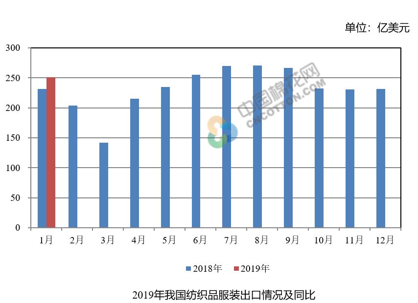 您現在的位置是:首頁 > 要聞 快報,2019年1月我國紡織品服裝出口額同環比雙增 來源: 中儲棉信息中心 發布日期:2019-02-18 字體: 【小】 【中】 【大】 據中國海關總署最新統計數據顯示,2019年1月,我國紡織品服裝出口額為250.63億美元,環比增加8.42%,同比增加8.47%。其中,紡織品(包括紡織紗線、織物及制品)出口額為114.12億美元,同比增加14.29%;服裝(包括服裝及衣著附件)出口額為136.51億美元,同比增加4.04%。 熱門文章: 聚力專精特新 共筑產業未來—2026中國紡聯春季聯展【紡織專... [2026-02-05] 鏈接全球家紡商機,2026intertextile秋冬展展位... [2026-02-04] 數讀2025 | 盤點全年中國紡織行業對外貿易表現 [2026-02-03] 以改革創新精神將社會工作各項決策部署落實到位--與會代表深入... [2026-01-28] 鏈接全球紡業,共啟“十五五”新篇--2026年紡織貿促會邀您... [2026-01-27] 展會直通車