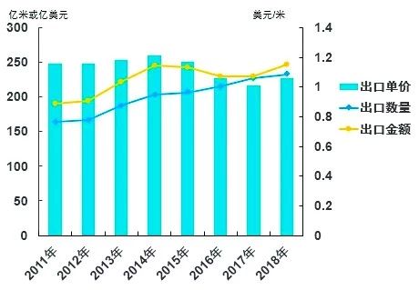 林琳:近年來,印染行業呈現量價齊升的態勢,出口表現良好。2018年,前10位市場出口數量合計102.62億米,占總出口數量的44.07%; 出口金額114.58億美元,占總出口金額的46.43%。