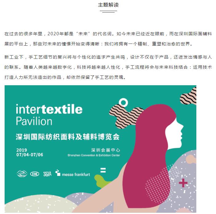 “精制未來” intertextile深圳國際面輔料展全新形象主題發布!
