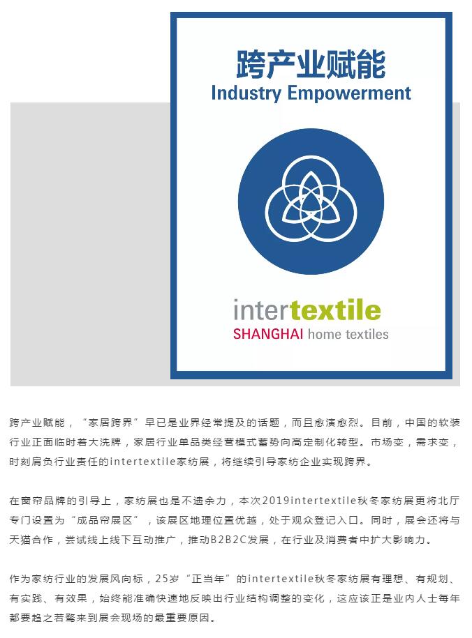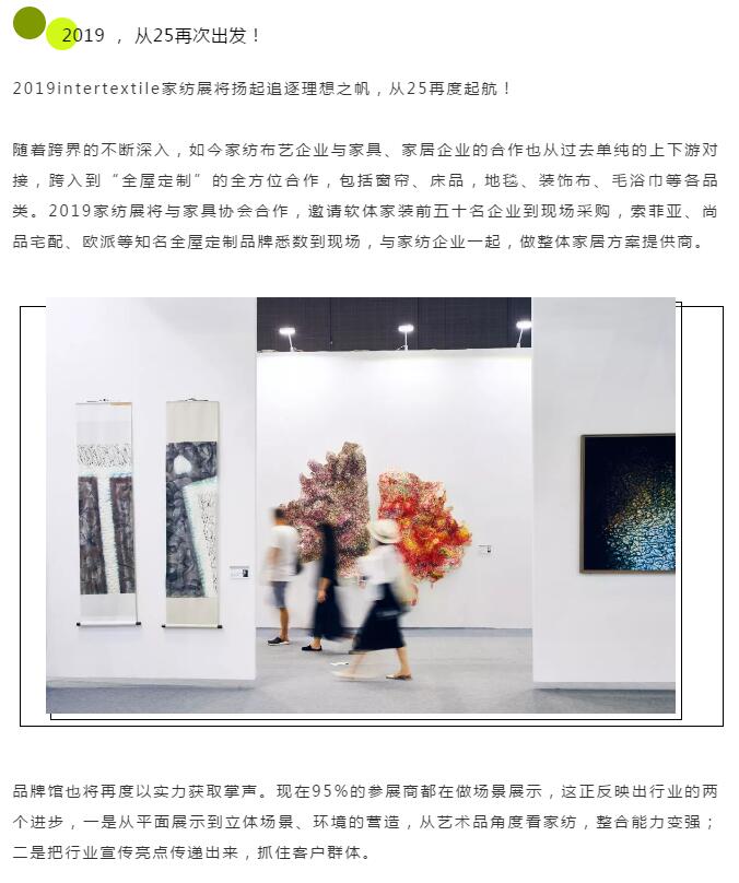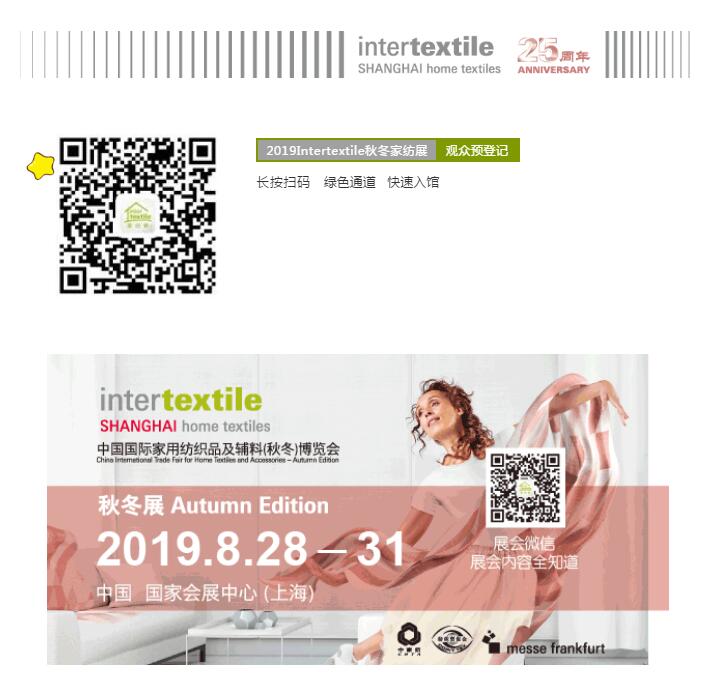 您現在的位置是:首頁 > 要聞 25年,intertextile家紡展的光榮與理想 來源:intertextile家紡展 發布日期:2019-06-18 字體: 【小】 【中】 【大】 熱門文章: 聚力專精特新 共筑產業未來—2026中國紡聯春季聯展【紡織專... [2026-02-05] 鏈接全球家紡商機,2026intertextile秋冬展展位... [2026-02-04] 數讀2025 | 盤點全年中國紡織行業對外貿易表現 [2026-02-03] 以改革創新精神將社會工作各項決策部署落實到位--與會代表深入... [2026-01-28] 鏈接全球紡業,共啟“十五五”新篇--2026年紡織貿促會邀您... [2026-01-27] 展會直通車