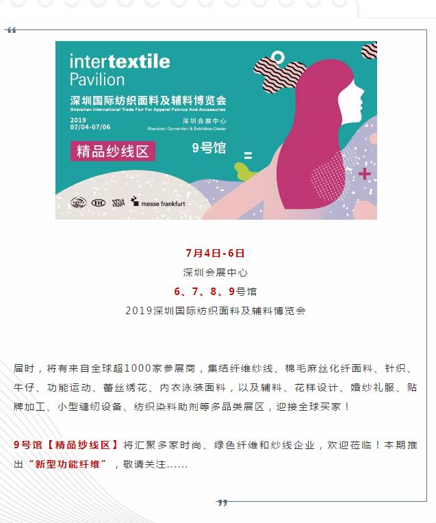 您現在的位置是:首頁 > 要聞 intertextile深圳國際面輔料展【精品紗線區】|科技的、綠色的,新型功能纖維也精彩 來源:yarnexpo紗線展公眾號 發布日期:2019-06-24 字體: 【小】 【中】 【大】 熱門文章: 聚力專精特新 共筑產業未來—2026中國紡聯春季聯展【紡織專... [2026-02-05] 鏈接全球家紡商機,2026intertextile秋冬展展位... [2026-02-04] 數讀2025 | 盤點全年中國紡織行業對外貿易表現 [2026-02-03] 以改革創新精神將社會工作各項決策部署落實到位--與會代表深入... [2026-01-28] 鏈接全球紡業,共啟“十五五”新篇--2026年紡織貿促會邀您... [2026-01-27] 展會直通車