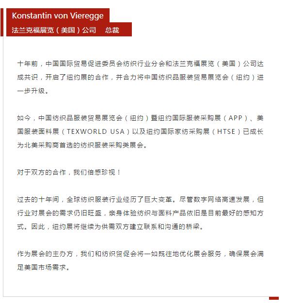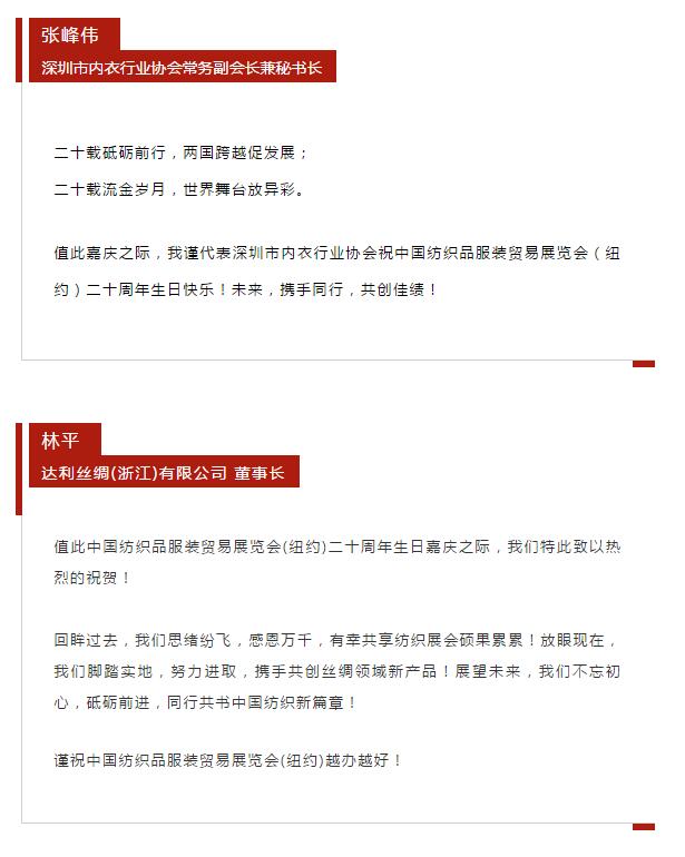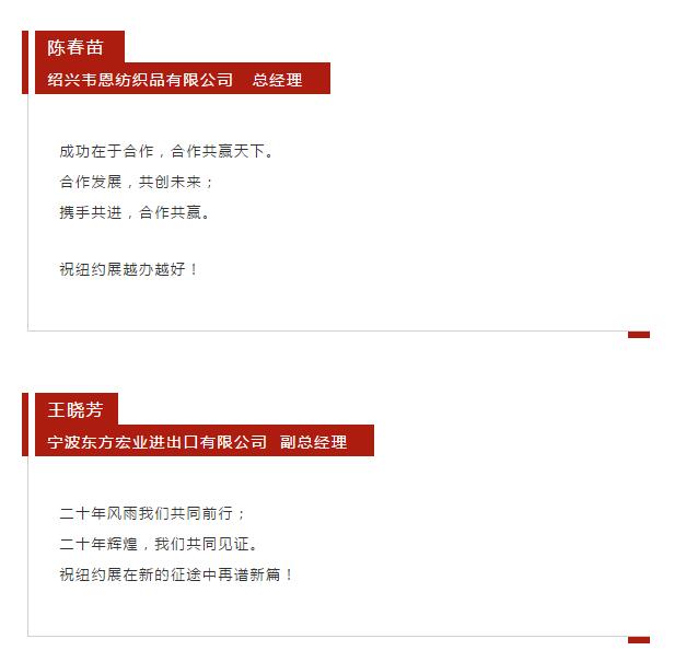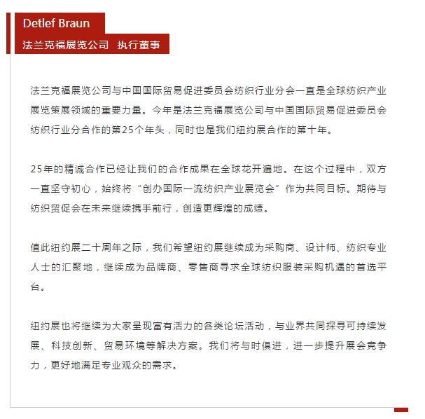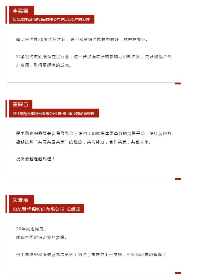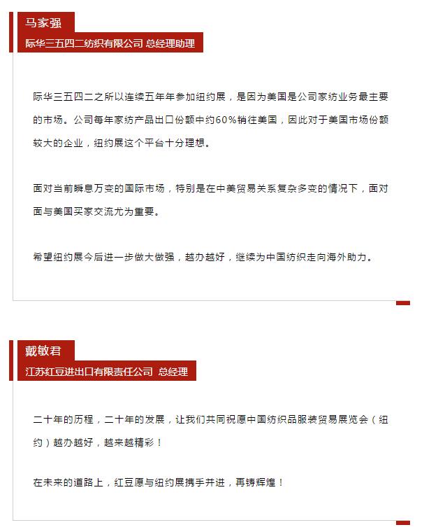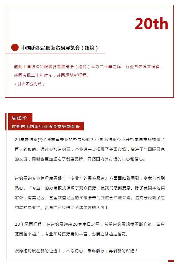 您現在的位置是:首頁 > 要聞 紐約展20周年: 行業各界送祝福 共同逐夢新征程 來源:紡織貿促會官微 發布日期:2019-07-22 字體: 【小】 【中】 【大】 熱門文章: 聚力專精特新 共筑產業未來—2026中國紡聯春季聯展【紡織專... [2026-02-05] 鏈接全球家紡商機,2026intertextile秋冬展展位... [2026-02-04] 數讀2025 | 盤點全年中國紡織行業對外貿易表現 [2026-02-03] 以改革創新精神將社會工作各項決策部署落實到位--與會代表深入... [2026-01-28] 鏈接全球紡業,共啟“十五五”新篇--2026年紡織貿促會邀您... [2026-01-27] 展會直通車